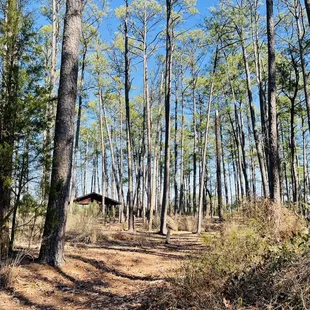 Woodsy area with shelter with picnic table