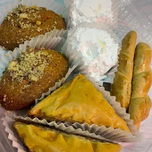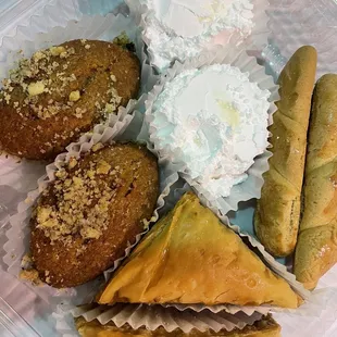 Chicken, gyro, moussaka and desserts