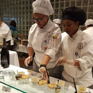 Wow what a night. First I gotta thank Xerxes for the ticket to this event. I came solo but it wasn't hard for me to make fast friends while eating great food. I was sooo excited to attend this event.....I mean...who doesn't want to try amazing food from great chefs. When I walked in my first stop was to grab a ballot to check out this food marathon I was about to enter. Normally I would try to limit myself on how much food I would try and eat..but not this time. I knew I was going to take on the challenge of eating everything.....eating everything......eating everything. Believe me when I say..... I wasn't a quitter. My top three places listed below. First stop - Chamberlin - Where my mouth met a delicious lobster roll. It reminded me of crab salad my mom makes, which diced onions, celery, mayo and chunks of lobster. Dessert - Sliced apple pudding, not a fan. Apples werent' cooked enough and dough wasn't sweet.Next up - Culinary Institute - Shepherd's Pie, Mulligatawny Soup and boston creme pie. I loved the soup, it had a curry chicken type of flavor that was familiar and delicious, favorite soup of the night. Shepherd's pie crust was a bit too sweet for me. Culinary Institue made me like boston creame pie, not an easy feat. The Catering Company - Chicken Morengo, was by far the best thing I tasted all night. Tender chicken thighs, very seasoned sauce with chunks of tomatoes, very pleasing to the palate. I enjoyed it so much, i started looking for that recipe on pinterest. The ginger cakes served for dessert were basically delicious ginger snaps. I loved them and wished they sold them in stores. Overall, if you're thinking about buying tickets to this event for next year....don't think too hard....just buy the ticket. I had a fabulous time, met great people, learned about restaurants I've never heard of, sampled amazing food and last but not least I didn't quit and I ate everything...I ate everything...I ate everything.