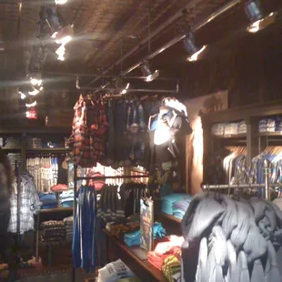While the style may not be for me, it may be exactly what you are looking for. The design of this store is wonderfully unique. They transformed the entire facade so that it looks like some sort of beach house right in the middle of a row of cookie cutter storefronts. The interior is dark and woody. No bright harsh lighting. The staff seem friendly and eager to offer assistance.Beach attire. Share board attire. Polos tshirts hoodies shorts sweatpants tanks.