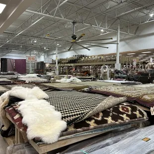 Love this store! It has lots of great and unique finds. It carries floor mirrors, indoor and patio furniture, calfskin and sheepskin rugs, and even gigantic rugs, flooring (laminate and tiles), cabinets, vanities, garden planters, bar stools, the list goes on and on. It's like a cross of Home Depot and lumber liquidators and world market.