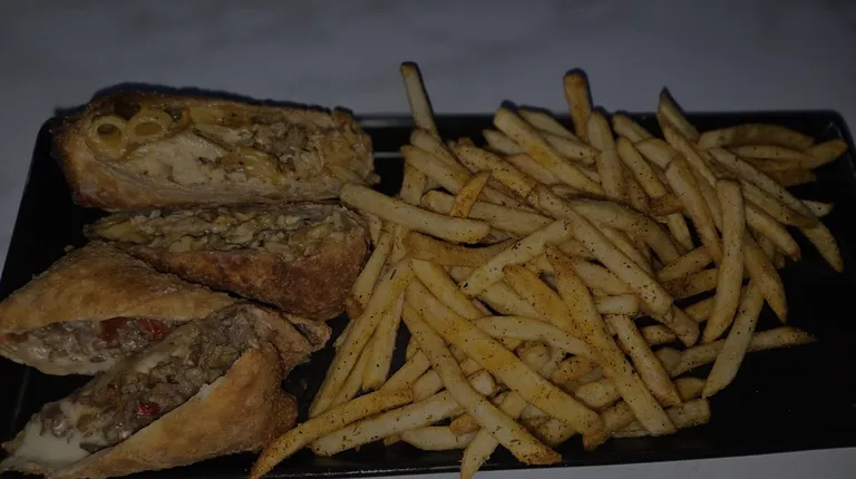 Steak and cheese and the Mac n cheese jerk chicken egg rolls was so amazing 10/10