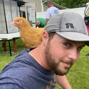 Chicken guarding the goats gate.
