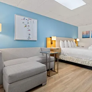 I was pleasantly surprised with our stay at Hotel Manteo! Room was bright and clean, exactly as pictures on the website. The main areas could have been a little cleaner, but the room was great! Very spacious. Employees were very friendly. Grateful to discover that they offered a grab and go breakfast each morning, as well! Definitely recommend!