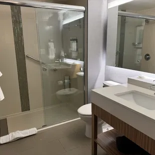 Brand new hotel and it's a nice addition to the area. Great location, close to the coliseum, restaurants & shopping areas. Plenty of parking, even w a boat trailer.Only spent a night here but will, more than likely, stay here again when in the area. Customer service was good, room was spacious and comfortable. It's brand new so everything was in working order. Breakfast was great!! First time having shoulder bacon :)