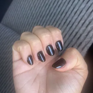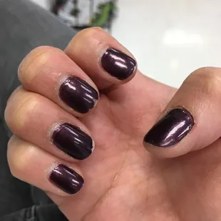 I'm very disappointed. I asked for short nails, no gel, regular nail polish. It looks so rushed. I got my nails done two days ago. The shape doesn't look defined. The color isn't even painted on properly.