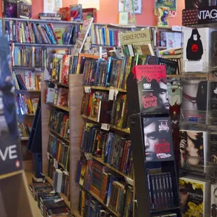 Great shop for local authors, buy a book read a free before posted title, and so many more merch finds! A nice retreat away from the bustle of the shops! Good prices and nice collection of books, magazines, and novelty book items!