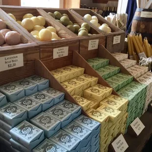 An interesting store to meander through. Nice mix of souvenirs (soaps, games, hats, kitchen wares, etc) with re-enactment actors needs (flasks, hats,etc) with items you might like in a Colonial-styled home (lanterns, maps, kitchen wares, etc). I think it's fun to 'explore' in here. To me, it's more of a grown-ups store. Not too many 'cheap' souvenirs for the kids.