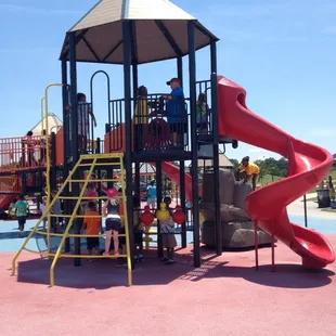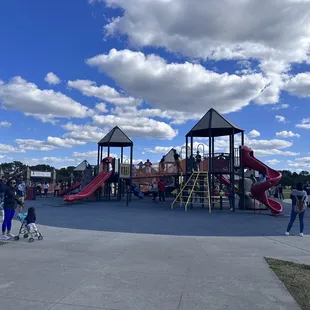 I can see this playground from the interstate. I have a 19 month son and had so much energy that I can't ever to keep up. Even if you have an older kid this place is perfect for any age. When I say this park had something for all ages... They really do! There is a bike path, running path, you can climb mount trashmore, there is a skate park, and a half pipe, there is also picnic areas. I had read they are going to add a water area as well for children.The playground is very large. It's suited for children probably age ten it below.They have vending machines, clean bathrooms, water fountains, etc.I absolutely love this park.