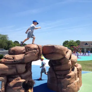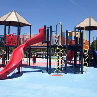 I love how this playground has different age zones. Brought my niece and nephew here to help with their energy lol and they love it here. They have an area just for swings, an area with slides and other cool fun kid stuff and another area with rock like structure for kids to climb. What I like the most is that there is benches for us to sit and watch the kids while they go crazy running around.