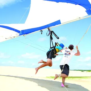 We drove from Virginia Beach for a day in obx and this was the highlight of our day! They start off by having one of the instructors give a short history of the school and hang gliding. Then they show an instructional video explaining the logistics of how you will operate the hang glider. After the video they take you outside to a demo glider and physically show you how to put your harness on and hook yourself to the glider. Then it's time to walk to the dunes! Once you get to the top of the sand dune you break up into groups (if necessary) with your instructor. We had Jesse and he was great! Very patient and takes the time to explain one more time how to hook into the hang glider and the logistics of how your flight will go. My advice is to bring tonssss of water. It can get pretty hot up there and you are running some and climbing back up the dune and you can honestly not get enough water lol. Also, just make sure to really listen to the instructors. They know what they are talking about and if you listen you will have good flights!If you will be in the area I definitely recommend this. It's sounds a lot scarier that it was, I promise! Lol.