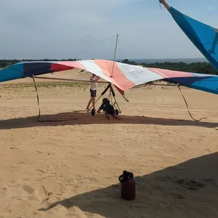 We drove from Virginia Beach for a day in obx and this was the highlight of our day! They start off by having one of the instructors give a short history of the school and hang gliding. Then they show an instructional video explaining the logistics of how you will operate the hang glider. After the video they take you outside to a demo glider and physically show you how to put your harness on and hook yourself to the glider. Then it's time to walk to the dunes! Once you get to the top of the sand dune you break up into groups (if necessary) with your instructor. We had Jesse and he was great! Very patient and takes the time to explain one more time how to hook into the hang glider and the logistics of how your flight will go. My advice is to bring tonssss of water. It can get pretty hot up there and you are running some and climbing back up the dune and you can honestly not get enough water lol. Also, just make sure to really listen to the instructors. They know what they are talking about and if you listen you will have good flights!If you will be in the area I definitely recommend this. It's sounds a lot scarier that it was, I promise! Lol.