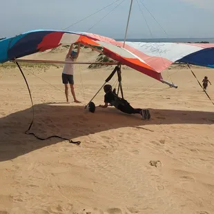 I recently took my family for beginners hand gliding lessons. We had fun with the activity. The people at the front desk were nice and great hype people. The park were they are located is beautiful and the ground around the building is a pretty walk while you wait. David the first guide we met was rude and sarcastic a lot so I was so happy to be put in Kyle's group at the dunes. Kyle was the opposite. He was nice and informative and went the extra step to make it special for us. Unfortunately we had to meet at the end again with David and it tarnished the overall experience. Overall it was a decent time at a fair price.