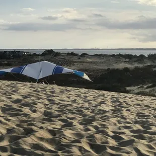 We had bought a naso tent in the duck location since we were on that side of the island. Tried using after get tips and tricks from "experts" and it was a good bit of work. 25# of sad in all 4 bags, buried with more sand on top. Stakes are strong and worked hard at keeping its shape. Was up more that down adjusting the polls. We had bought the largest one and it's big I mean way big. It's too big for 2 people. The foot print of it is 3 times the size. It take up a lot of real a state. Tried to return to a same company just at a different store. According to them and there was signage. Not mentioned at that location. Manager said he would call them to see what could be down. We explained w Too big for two of us. Neso company was very very helpful on their end and called the store to do an exchange. And that is what we did. The manager was more than patient with us and this ordeal. We are hopefully straight now. P