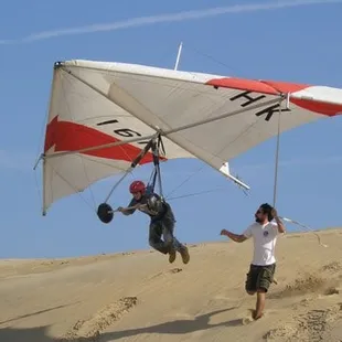 We drove from Virginia Beach for a day in obx and this was the highlight of our day! They start off by having one of the instructors give a short history of the school and hang gliding. Then they show an instructional video explaining the logistics of how you will operate the hang glider. After the video they take you outside to a demo glider and physically show you how to put your harness on and hook yourself to the glider. Then it's time to walk to the dunes! Once you get to the top of the sand dune you break up into groups (if necessary) with your instructor. We had Jesse and he was great! Very patient and takes the time to explain one more time how to hook into the hang glider and the logistics of how your flight will go. My advice is to bring tonssss of water. It can get pretty hot up there and you are running some and climbing back up the dune and you can honestly not get enough water lol. Also, just make sure to really listen to the instructors. They know what they are talking about and if you listen you will have good flights!If you will be in the area I definitely recommend this. It's sounds a lot scarier that it was, I promise! Lol.