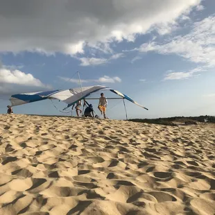 We drove from Virginia Beach for a day in obx and this was the highlight of our day! They start off by having one of the instructors give a short history of the school and hang gliding. Then they show an instructional video explaining the logistics of how you will operate the hang glider. After the video they take you outside to a demo glider and physically show you how to put your harness on and hook yourself to the glider. Then it's time to walk to the dunes! Once you get to the top of the sand dune you break up into groups (if necessary) with your instructor. We had Jesse and he was great! Very patient and takes the time to explain one more time how to hook into the hang glider and the logistics of how your flight will go. My advice is to bring tonssss of water. It can get pretty hot up there and you are running some and climbing back up the dune and you can honestly not get enough water lol. Also, just make sure to really listen to the instructors. They know what they are talking about and if you listen you will have good flights!If you will be in the area I definitely recommend this. It's sounds a lot scarier that it was, I promise! Lol.