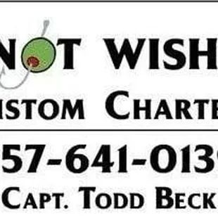 My husband and I won the sunset cruise at Wings for Warriors with captain Todd. We planned multiple trips and had to cancel them due to the weather. Todd was very accommodating and understood that we wanted to see the sunset and tried to plan another day for us that would be better. We finally scheduled a time that worked for us and could not be happier with the trip... Captain Todd was very hospitable! Next trip, half day fishing tour!