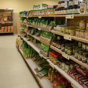 shelves of food in a grocery store