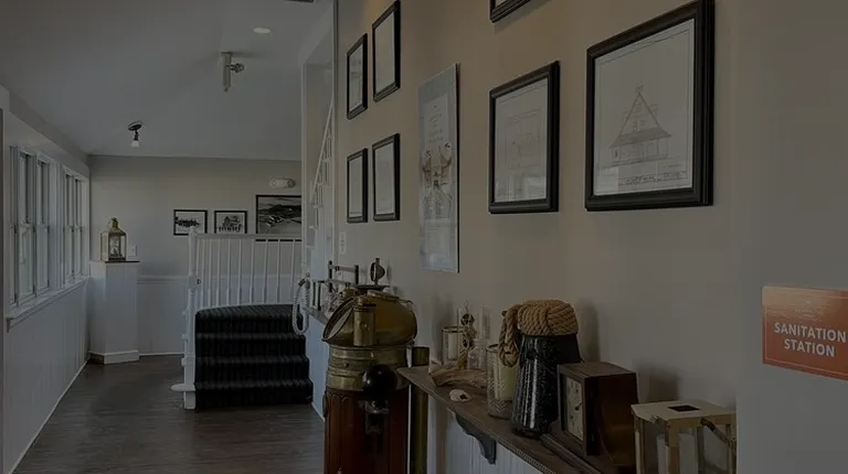 Outside of restaurant - this is a **real** restored, historic life saving station! So cute. Sits right on Sanderling property facing sound.