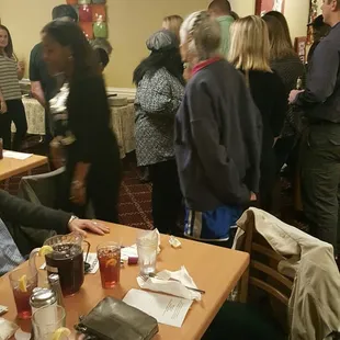 A group of us went here for St. Patricks Day. We thought we would try something new. There were eight of us. I called and made reservations. Was told that $40 per person hold would be put on my card and charged if any of the parties didn't attend.We all showed up after searching for the location. It is in a room in the "Grill" restaurant. We all manage to get there on time.In this little room were long tables crammed together. Dinner was buffet, which was fine, but every time you got up to get something, you had to squeeze out of your chair while bumping into the person behind you.The food was horrible. I think it was all premade. The show was funny at the end but in the beginning it really just drug on and on. Also, the actors were constantly interrupted by the kitchen staff and had to move out of their way while in the middle of their performance.They serve beer and wine, but they were out of most of what people from our table ordered.Service was pretty good. Actors were funny. Food and facility were terrible.I would never recommend this to anyone!