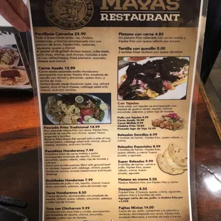 a menu of mexican food