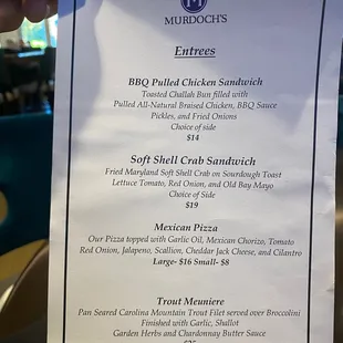 Unfortunately, I can't give much of a review except for one star because when I got to the restaurant after making a reservation over a week and a half early, they told me they did not have my reservation. I specifically called and made sure I spoke to someone at the restaurant because I was staying at the Marriott as we were going to buy properties in the area and wanted a place that was right there in Fords colony close to the Marriott. I got to the restaurant at 6 PM or a little bit earlier and when I asked for a table for two under my name they said they did not have my reservation and were totally booked. They don't give confirmation numbers, they don't make reservations through OpenTable. It's just who you talk to I guess. The gentleman who I spoke with at the front desk at the restaurant said he would check with someone went upstairs told the girl that was seating people to put me on a waitlist. I asked if the waitlist was going to be more than a few minutes she said about 45 minutes so here we are at a place that I needed to get a bite to eat after driving five hours. I walked out and never will go back again. In addition, I doubt very much. I'll be staying at that Marriott again just not worth it. we did have a fantastic dinner by the way at Tuscany restaurant which the food was absolutely excellent. The service was excellent. They seated us immediately in a nice cozy booth. Go to Tuscany Skip Murdochs, or go somewhere else because they're a little bit snooty there about giving people who are even staying at the Marriott the right time of day.