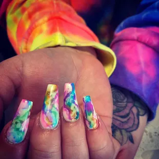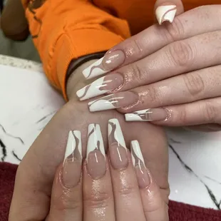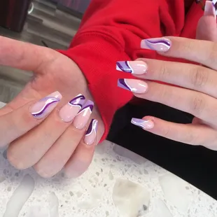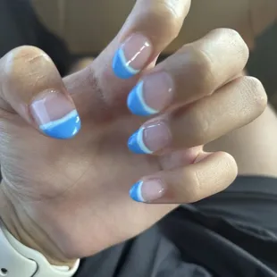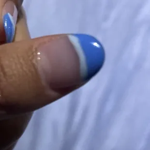 nail tech made me bleed 3 times and didn't even say sorry once. i got tips and they feel on the verge of snapping any moment. one of the nail techs was fine and my friends nails looked great. mine had uneven lines and some thick and some thin. lady made us tip more than we would like to. i do NOT recommend going here. so upset and mad.