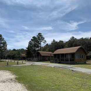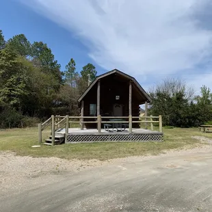 Camping cabin! This one has a double bed and one set of bunk beds. Linens not provided.