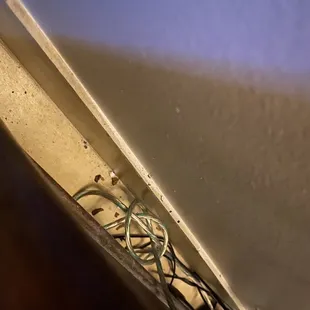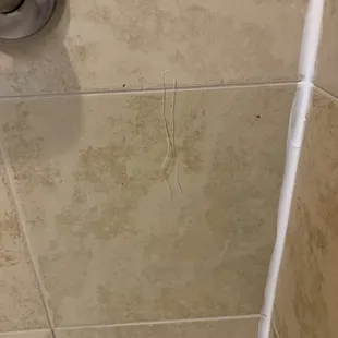 Some else's dental floss hanging from the wall, found right when we entered the bathroom.