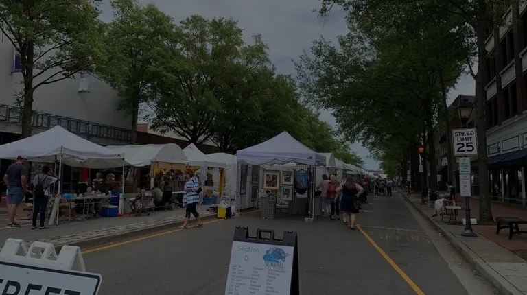 a street scene with tents and people