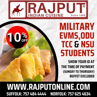 Rajput Weekly Special! Treat yourself to a FREE Samosa with your choice of entree and bread.