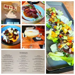 Revel was a nice and refreshing take on dining. it's a tapas bar with food from around the world. They have large wine selection but the cocktails and bartenders were the stars. All the plates are small plates, but each plate is done so well. My wife and I started with bread and spreads and venison and lamb skewers. If you go here you have to try the skewers. You will probably order 2. Well seasoned and no game flavor. Other food highlights was pork belly, raviolis, and chorizo dates. The atmosphere is ok. It's a market with a bar and tables. It is a good date night spot. But the food and service is what makes the place something special.