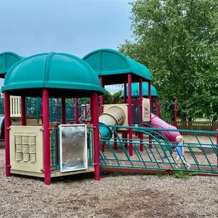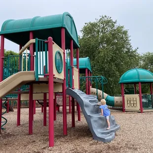 Honestly this is kind of a hidden gem.I highly recommend a group of moms go so they can all watch the kids.There are so many different little areas to play around that you can be here for hours.Parking is decent.They are swings which most parks don't anymore.There is a nice walking trail as well. I've seen people on bikes and mommies with strollers.There is a shelter and tables to sit under when the sun is beating down. Having girls of different ages, this allows them to all be able to be entertained.