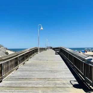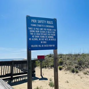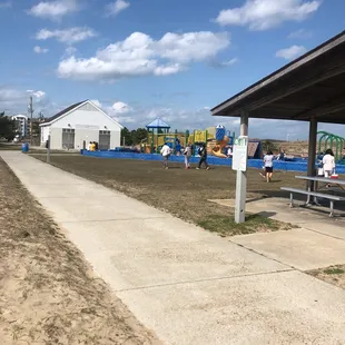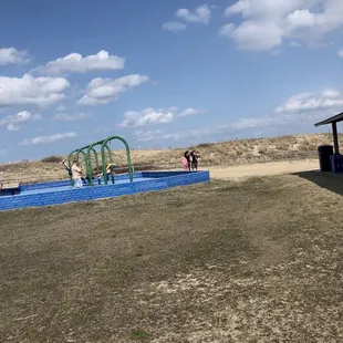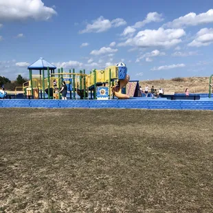 Always a great place to take for some family time!! Once you drive all the way down you will reach the parking lot for the park. They have been busy adding new machines to pay to park. Which I am sure is coming soon. We came in March and did not have to pay. They also added the machine to the pier which was free today along with parking. The bathrooms were also open and clean. None of the water showers were turned on. Once summer arrives they will and you will be able to clean the sand off! The park is such a hit! In the summer the equipment can get very hot. But the rubber mat on the park is great to protect the kids from getting hurt. On the play ground they have Swings Rock wall Little animal bouncers Slides. Benches Shelters with picnic tables.Definitely a great place to eat lunch and then play and cost the beach. Also closer to the pier a giant blue chair great for pictures!!