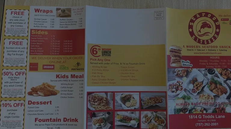 Seafood kitchen in Hampton Va off of Todd's Lane is temporarily closed. I did enjoy their catfish and hope they will reopen soon.