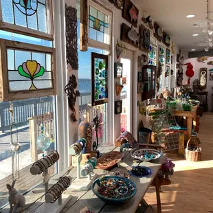 Bottom Line: One of my favorite stores in the Outer Banks and the closest thing to a treasure chest on the barrier islands.I'm a big fan of Seagreen Gallery and I've been shopping at the Nags Head location for a long time so while shopping the stores in Duck I couldn't resist dropping in. Seagreen Gallery sells salvaged items, antiques, repurposed items and hand crafted items. The decor of my home in Maryland is somewhere between traditional and transitional so I didn't initially think the eclectic Seagreen Gallery would be for me but it absolutely is! I've bought many items at Seagreen Gallery over the years but my absolute favorite is my tumbled bottleneck light strings - I am the proud owner of several. While the Duck location doesn't have the charming backyard full of domestic bunnies like the Nags Head location does, it does offer beautiful views of the Currituck Sound. I love how the windows on the rear of the store allow lots of natural light in illuminating the beautiful glass items.