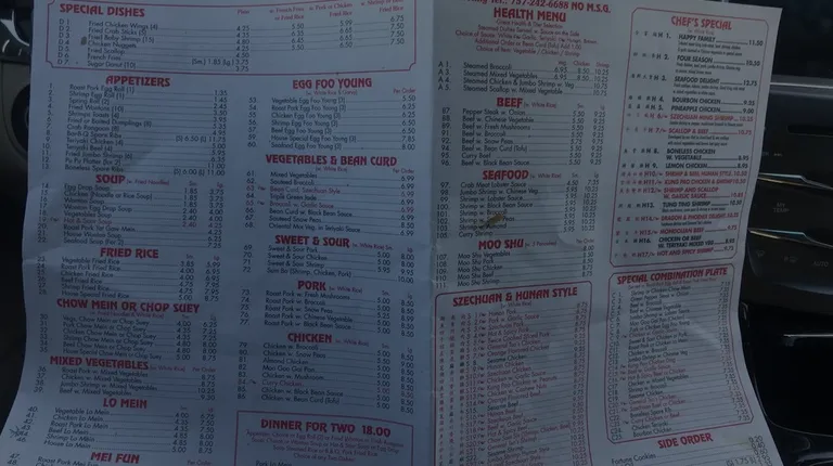 a menu for a chinese restaurant