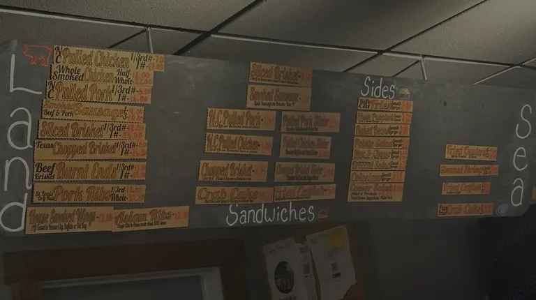 Not a traditional sit-down restaurant; you stand at the register, make your order from the menu, then pay and wait for them to call you from the kitchen window,That said, the BBQ was good and the sides were fresh and flavorful. The portion is a little small for the price, but if that's the worst thing I have to say, then never mind. They have a decent bar, sports on the TV, and plenty of seating. Give the place a try.