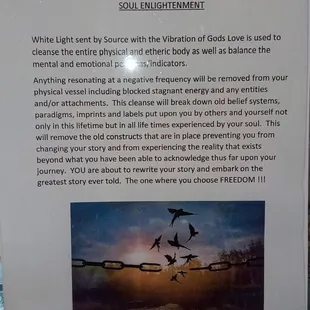 I love this store. Ms Dawn is the owner and she offers several services for energy work and guidance. The store carries candles, teas, crystals, and more.. Ms Dawn is very patient and informative and will help you with what you need.One side is for healing work and classes and the other side is the store. They carry nice crystal jewelry as well. There are occasional psychic fairs where there are different tarot readers and psychics doing readings for a discounted rate. I did the soul enlightenment and it was very helpful... She also does Reiki which is great if you need those chakras balanced!! If you've never been to a store like this i would definitely recommend going in to see what your drawn to. Everyone has different beliefs and this type of store has something for everyone. Rose quartz ,amethyst, and hematite are great crystals to start with. The prices are very reasonable!! I got a beautiful quartz singing bowl from there and i love it. Stop by and check her out!!