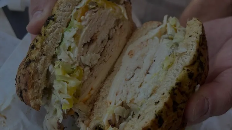 "Breakfast Bagel" on an everything bagel toasted
