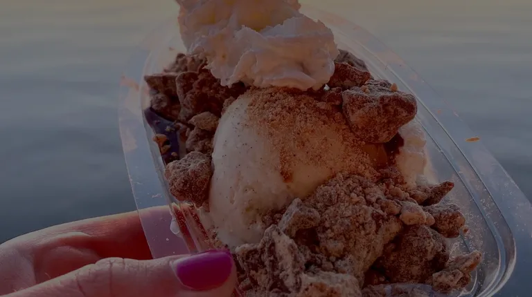 This little ice cream window has basic options like cones and sundaes with a variety of classic toppings. For me, the best part was the gorgeous view of the sound and sunset!