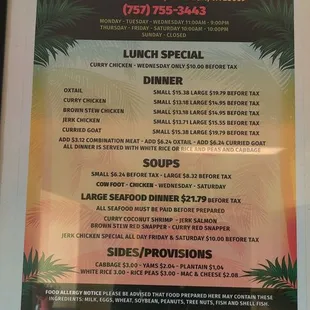 Oxtail dinner was tasty. Portions were ample. Food was hot, fresh and served with a smile. Will return when I can afford it(oxtails are now a luxury)