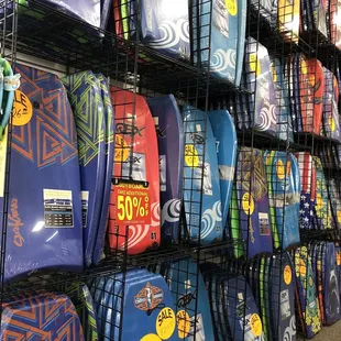READ WHOLE REVIEW100% HonestEverything was 50% off and had a great price. Stopped by to grab some boogie boards and a hat. Many different sizes of boogie boards, but they weren't cute but thats usually the case with body boards. They all say OBX on the back. They have many hats of different sizes. I only explored the right side of the store, so I wasn't able to see the full inventory and store. This Super Wings had post cards priced at 2 for $1. They offer carts and baskets, which you don't usually see in these types of stores.The female worker that day wasn't particularly friendly but wasn't rude either.