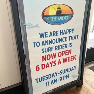 Today is the first day that that Surf Rider Kempsville was open, and it did not disappoint. There is no sign on the outside of the restaurant yet, which was kinda funny, cause we felt like we were going into a secret restaurant that nobody knows about. But they opened May 4th (may the 4th be with them), and I have watched as they have been renovating the restaurant. Some friends and I decided to check it out for supper, and once we walked in we were greeted and seated in a booth. The inside has a nice bar area, and then a regular seating area. There were a lot of guests there eating already, so I'd say it was pretty full on a Thursday evening. Our waitress (Onalise I'm not sure of the spelling, I just remember she said it starts with an O) was our server and she was just great! Really enjoyed her company and her humor! There is a laminated drink menu as well as a separate laminated food menu. My friend ordered a dirty martini and the rest of us ordered the 32oz crush bucket ($15). There are 4 flavors and we tried them all, blood orange, caribbean, texas grapefruit, and regular orange. They were all good but the blood orange was probably my favorite. The martini was nice and strong as it should be. After looking over the menu which is one page back and forth, we decided on calamari, a couple soft shell crab sandwiches, a seared tuna dinner, a crab cake sandwich, a burger with half a crab cake, and tots, fries, onions rings, and a baked potato. The calamari was fantastic! Light and crisp, and so tender, not a hint of chewiness. Served with a chunky marinara sauce it was a perfect starter and cannot wait to eat it again when I come back. The crab cake sandwich was served with pickle, tomato, and lettuce, and was just full of lump crab, and the crab cake burger was a nice medium rare burger with a half sized lump crab cake ball perched on top also served with lettuce, tomato, and pickle slices. The soft shell crab sandwich was served with lettuce, tomato, and lettuce as well, and I added Mayo and some of the marinara sauce to it and it was crispy, plump, full of crab, and delicious. The tuna was well done and she asked for it to be rare, so it was corrected and the flavor of it was really savory, and tender. Overall, we had such a great experience there for supper, and for it to only have been open for a few hours, they were doing great. The steamers weren't working yet, so no steamed food can be ordered yet, only broiled or fried food for now but I'm sure it will be up and working asap! I cannot wait to come back for delicious drinks and seafood!!!