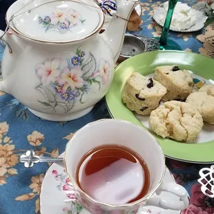 First of this was our first tea party we ever done and we were delighted and thrilled to come here. There two ladies working the tea shop and was astonished how they prepared the place in serving the teas. I had the typical Jazmine green tea and my daughter had the earl grey but I forgot what my wife ordered as it was something close to the taste as coffee as she is a coffee lover. Anyways we had the scones first then a two tier fruit and sandwiches of cucumber, tomatoes and a marbled bread with an orange spread and oh chicken salad sandwiches. And the last piece of resistance... raspberry bread pudding. The scones were moist and soft, full of flavor with tons of various fruits inside. Jam was decent and the butter was simple though the scones steals the show. Sandwiches were tasteful and filling. As for the tea, excellent and full bodied with tons of flavor... steep to perfection. We will definitely come back again. Too bad it is only open 11-3.