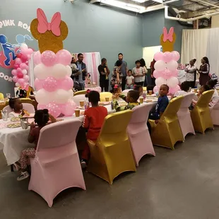 What an amazing space. The pink roller is not only a play center for the kids but it has an amazing space for personal events. I attended an event the decor was awesome and beautiful. The owners were extremely professional and show pride in their business. If you are in the Norfolk area and have children definitely take them! If you need to have a luncheon or event have it there!