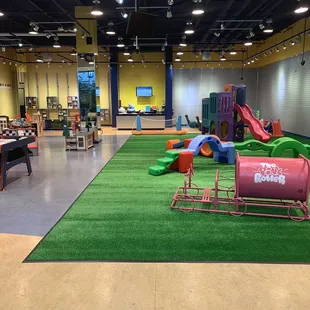 I don't think I will ever go back to this place. I was there a little under an hour and left. I wanted to like this place so much because it was black owned but I HATED it for so many reasons! 1. The front was WIDE open so any kid playing could just run out into the mall. 2. They had this stupid scratchy fake grass turf down that my son had a hard time running on and he kept falling and it would easily cause a horrible scratchy friction burn. 3. There were so many safety hazards for a place that is for kids. No baby gates, there was a table at the front with sharp corners and no safety cushions or pool noodles to protect any kid that might possibly run into it. (My son ran into it and got a knot and scratch on his head). 4. There were a couple older super rude and rambunctious kids that looked to be about middle school aged that almost knocked my 1 year old over on multiple occasions and another lady's infant child. They were too big to be playing on the baby stuff they were playing on. 5. The other part of the floor was a hard cement type floor that definitely would be dangerous in the event of a fall and the floors were filthy. 6. The toys were filthy and gross and they were scattered everywhere and don't look like they've been sanitized EVER! 7. They were playing very adult music that was not appropriate for a kiddie establishment. I think I will just stick with Green Bean from now on it's cleaner and safer and the staff is more sweet and social with the kids there too. I also actively see them picking up and cleaning toys during my visit which I appreciate and I would rather take my child to a place that's child proofed. I would give it zero stars if I could. My sister hated it too.