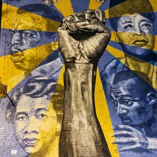 a mural of two men on the side of a building