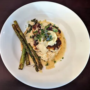 Blackened Sea Scallops with Lemon Beurre-Blanc Risotto (traditional menu).