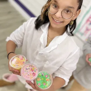 This is the perfect place to do a hands on activity for kids, surprisingly we also saw 2 teen/YA couples here as well. We took our niece here because she loves slime. I called a few days prior to get details because I assumed there would be time specific windows for the "experiments". However, they operate on a 1-to-1 basis as you arrive which is perfect for small groups. I was told for larger groups they recommend booking in advance and they also do parties. We selected the $35 experiment and she was able to create 2 slimes and get 2 premade slimes. I wasn't expecting the additions of charms and scents but that made it even more worth it; we were very intrigued by the process. The staff were friendly and the specific staff (Ebony I think) who worked with our niece was very sweet and patient. We'd definitely return here with her or other kids in the family but this could also be fun for a family to do together.